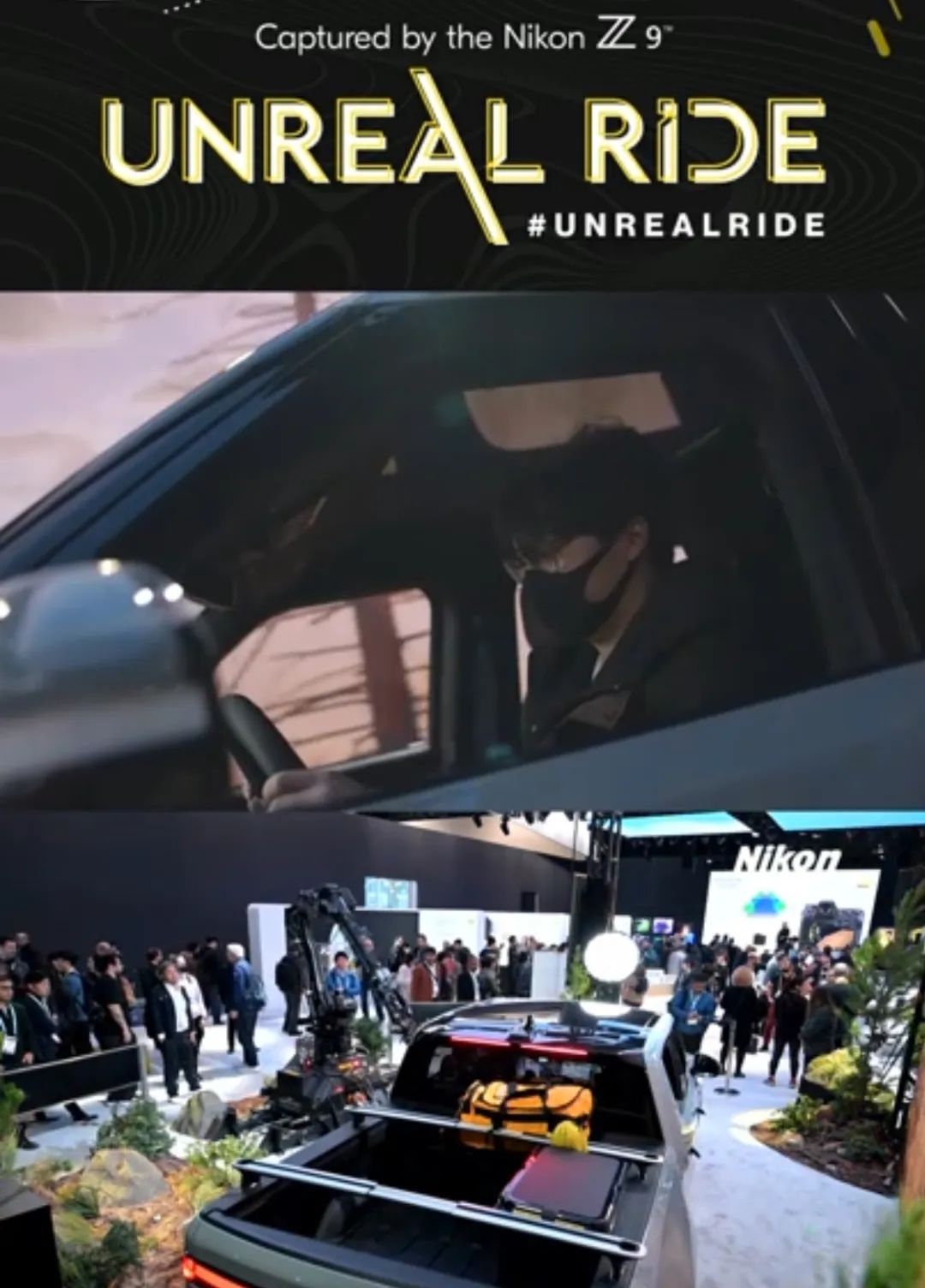 比如体验区有一个装了旗舰相机尼康 Z9 的 Unreal Ride 的机械臂,可以免费拍摄一段炫酷的车拍小视频。