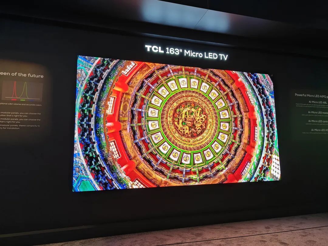 最让我们震撼的是, TCL 现场居然有一块足足163 吋的 Micro LED 电视。。。163 吋!