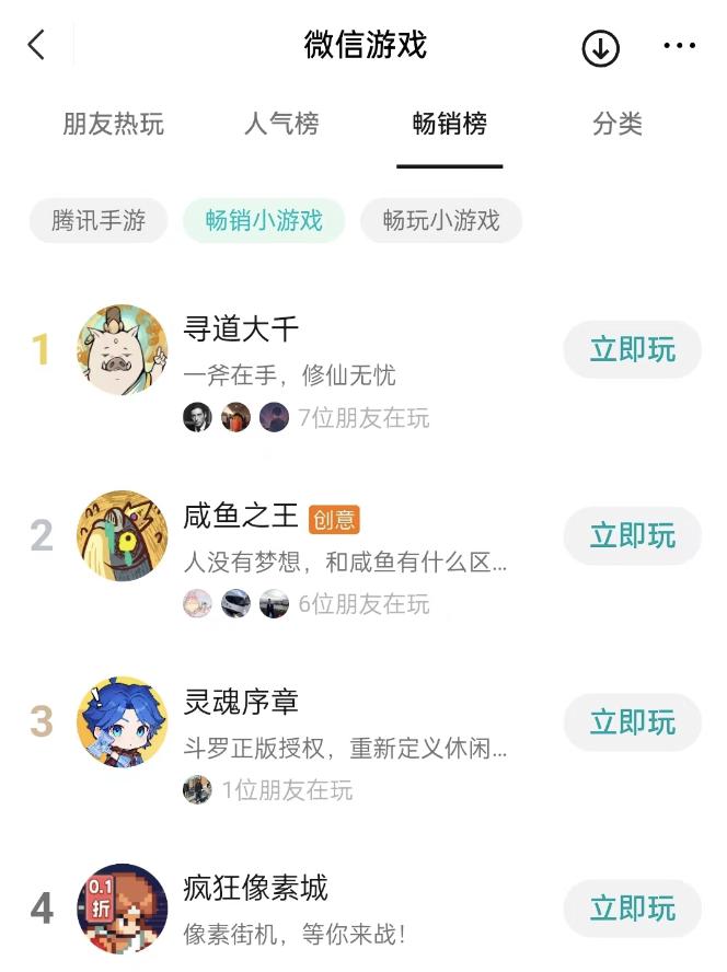 1月11号,《疯狂像素城》微信小游戏跃升至畅销榜TOP4。
