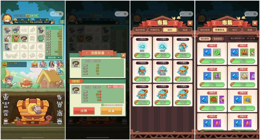 产品方面,《魔灵勇士》主玩法是《疯狂骑士团》的开箱子。与《疯狂像素城》类似,强调0.1折,0.3元的最低充值档位、28.88元购买28880钻石+其他资源的豪华大礼包等。