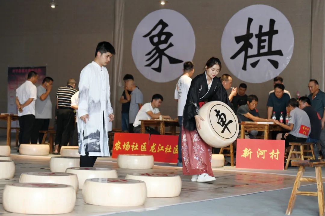2023年8月19日,湖南岳阳。中国象棋爱好者身着古装体验巨型象棋对弈。(图/视觉中国)