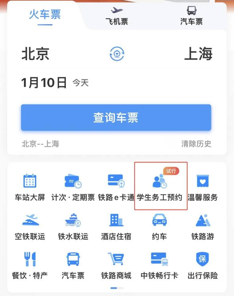 为保障学生、务工人员等重点群体春运出行,据“中国铁路”微信号,自1月10日零时起,铁路12306手机客户端推出春运期间学生、务工人员专区预约购票功能。