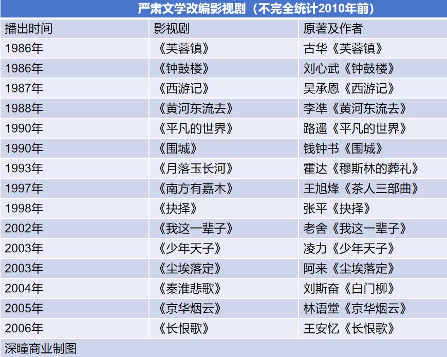 曾几何时,严肃文学改编剧不可胜数,八九十年代的《钟鼓楼》《抉择》《南方有嘉木》,零几年的《少年天子》《激情燃烧的岁月》《尘埃落定》《长恨歌》。