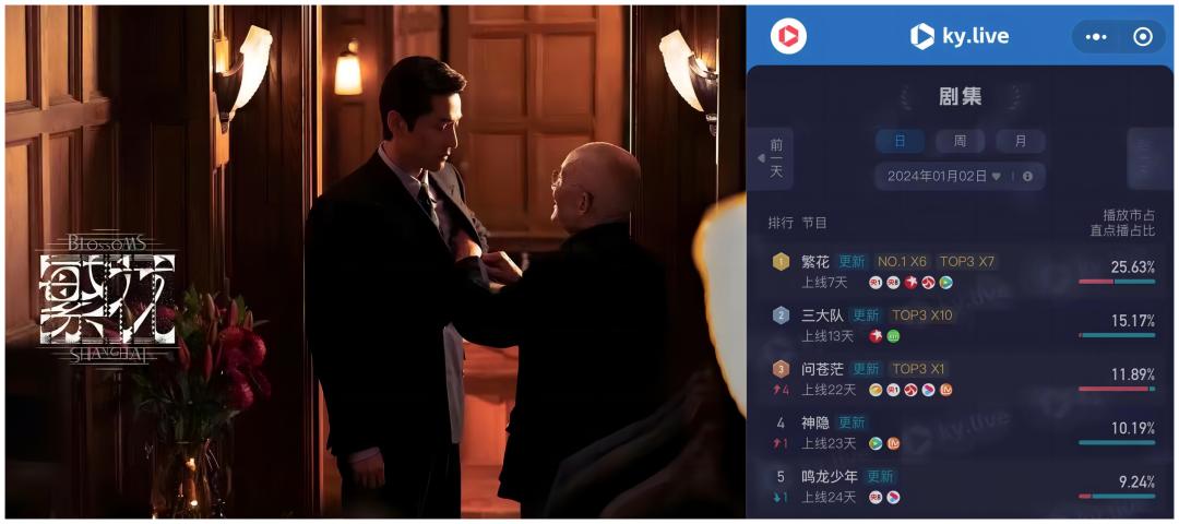 不过鹅厂近来颇有奋起直追的势头。除了开年红的《繁花》,储备片单里可以看到《风禾尽起张居正》《千里江山图》这两部茅奖作品改编剧,走历史情怀与纵深路线。