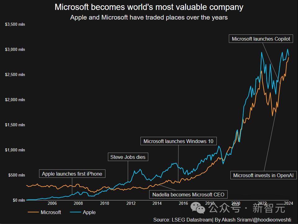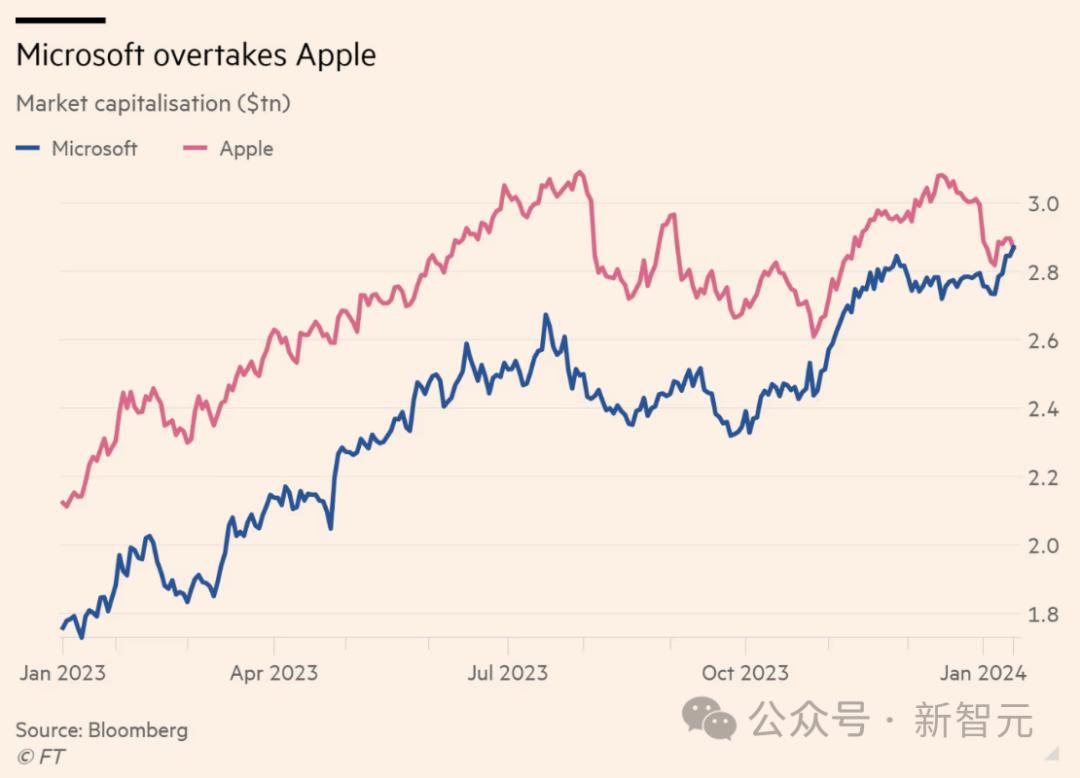 生成式AI加持,微软市值一度超越苹果,重回第一宝座