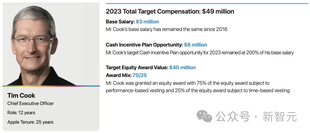 在2023年,他的目标薪酬降为4900万美元,不过,实际上他拿的比这个数多。