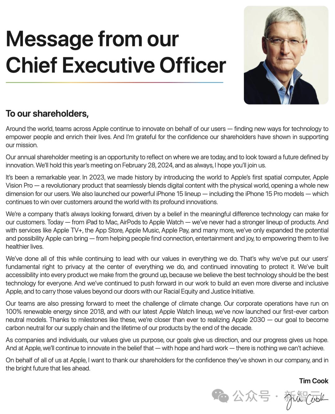 今天,苹果发布了面向投资者的年度委托书,其中披露了有关高管薪酬、股东提案等方面的细节。