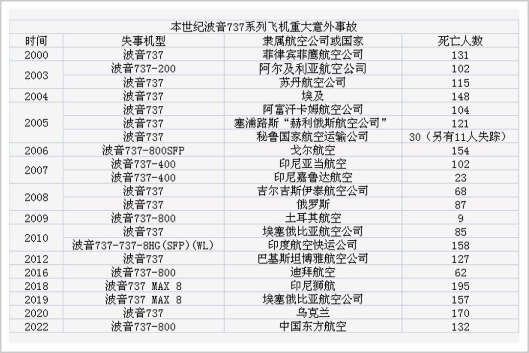 但事实上,从2000年至今,在全球范围内,波音737系列已发生过至少22起重大事故。