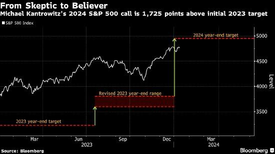 Kantrowitz上个月向客户表达歉意,称美联储今年对潜在货币宽松证策的鸽派转变是美股的积极催化剂,可能会扩大市场上涨的广度。“今年我对股票绝对收益的判断大错特错,”Kantrowitz在12月15日的一份报告中写道。“我正在努力保持开放的心态,愿意收起我的自负,不再固执己见。”