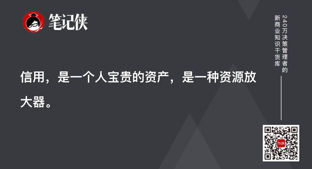 信用,是一个人宝贵的资产,是一种资源放大器。有良好口碑的人,总能干出超出个人能力的大事。
