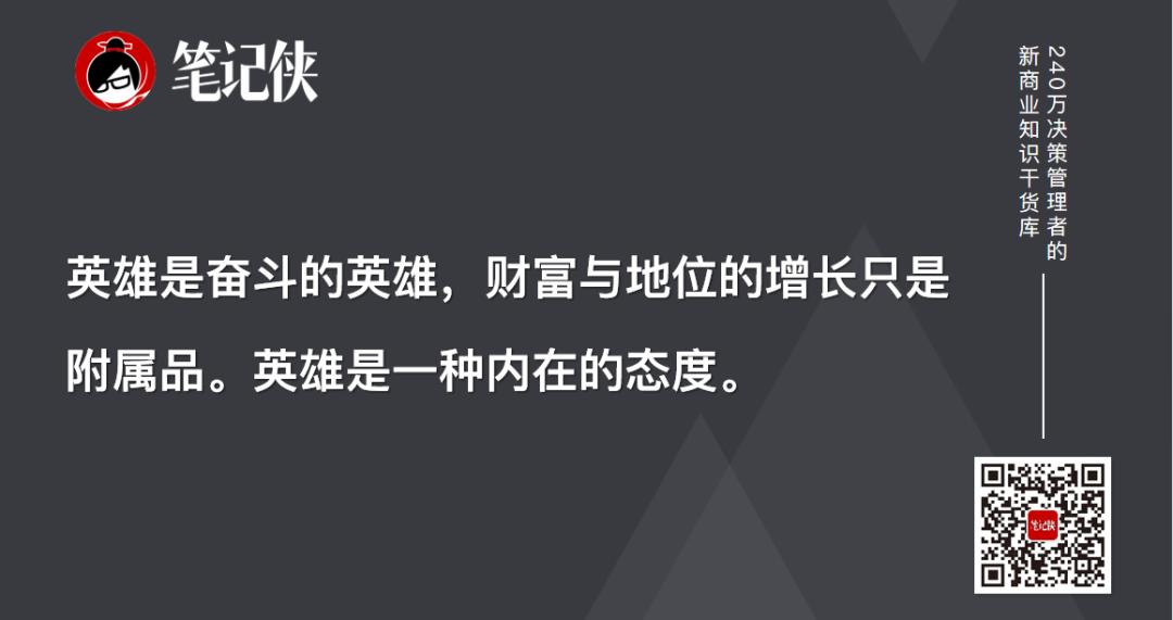 英雄是奋斗的英雄,财富与地位的增长只是附属品。英雄是一种内在的态度。