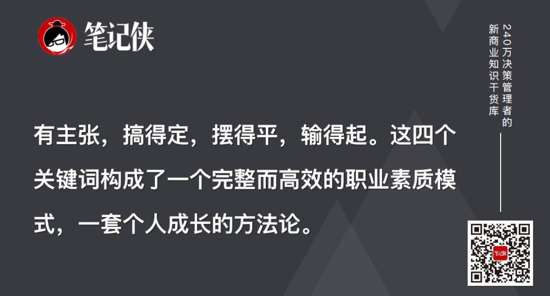 有主张,搞得定,摆得平,输得起。这四个关键词构成了一个完整而高效的职业素质模式,一套个人成长的方法论。