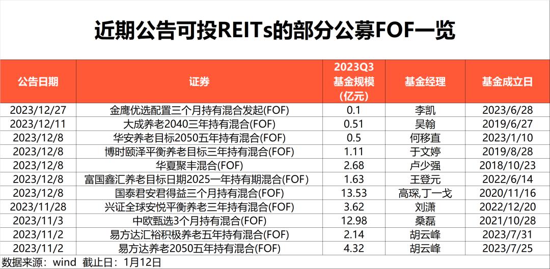 随着公募REITs从试点阶段迈向成熟,多家基金管理人去年下半年以来密集发布公告,将公募REITs纳入FOF投资范围。