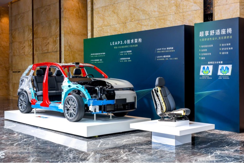 开放日上,零跑发布 LEAP 3.0 六大智能电动核心技术,涵盖四叶草中央集成式电子电气架构、三电技术、8295 加持的智能座舱、智能驾驶、全球化整车架构等技术模块。