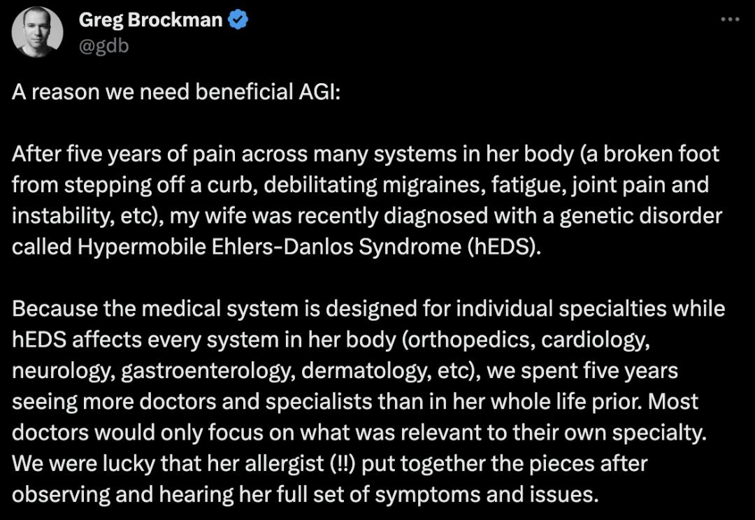 OpenAI联创Greg Brockman的一番话点明,当前先进AI系统还需不断演进,有望破解人类医学难题。