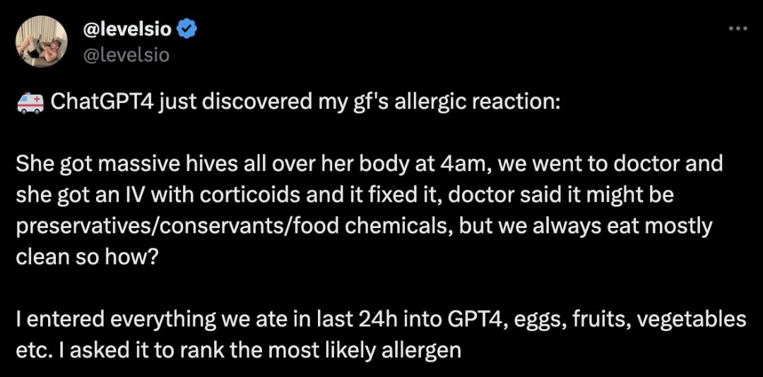 近来,有网友发文表示,在ChatGPT帮助下,发现了女朋友的过敏反应。
