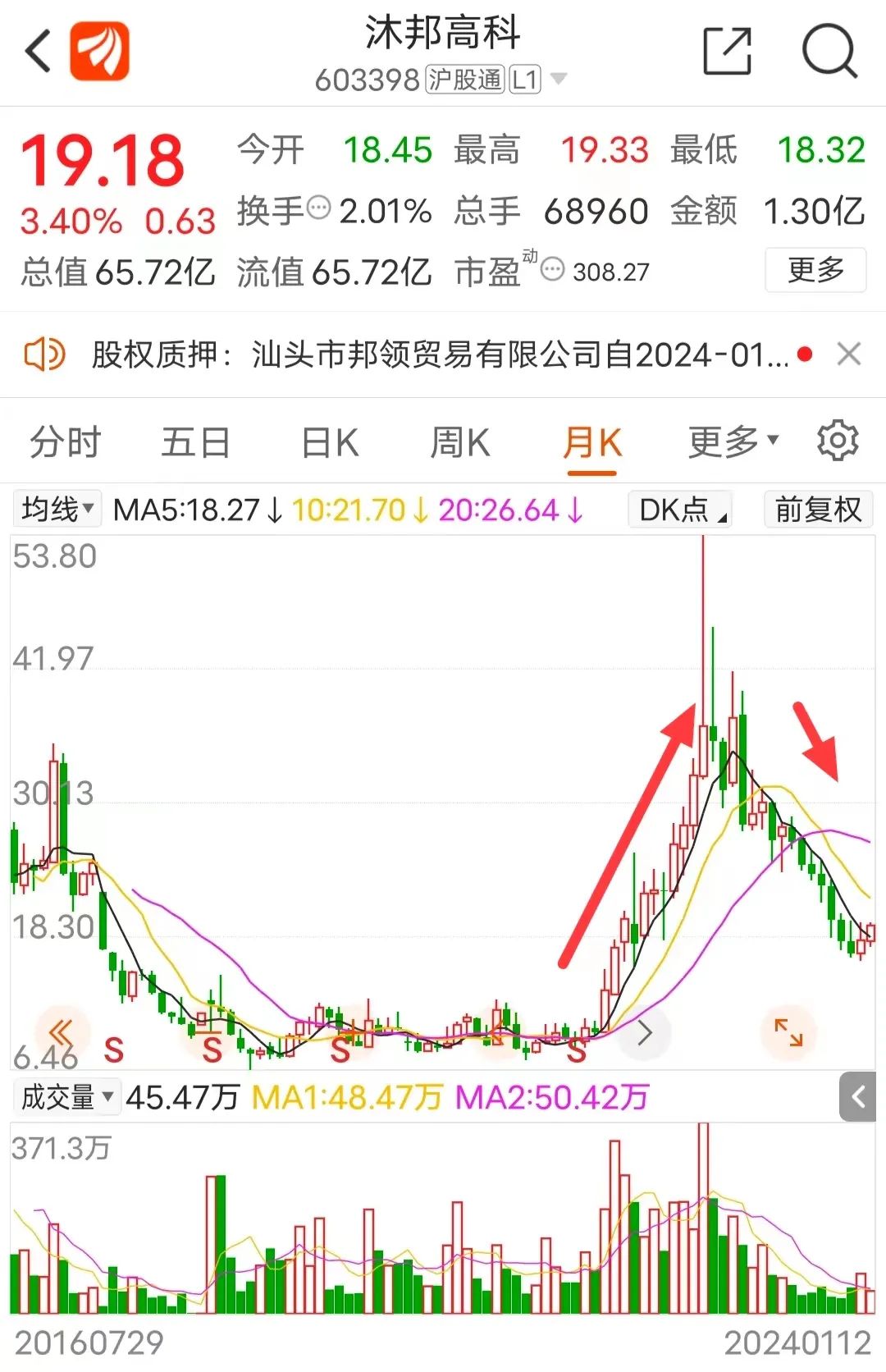 业绩暴亏下,公司股价也撑不住。在公司易主及重大资产重组完成后,刚好碰上新能源行情,沐邦高科股价一度迎来数倍涨幅。但2022年8月,其股价见高点,此后持续回调,截至目前跌幅已经超过60%。
