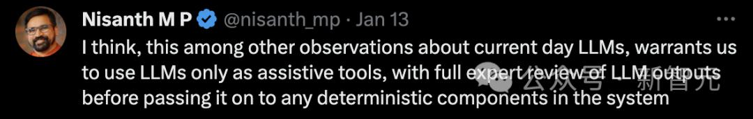 有人表示,这项研究以及其他观察表明,我们有理由只将LLM作为辅助工具,在将LLM输出传递给系统中的任何确定性组成部分之前,需要对LLM输出进行全面的专家审查。
