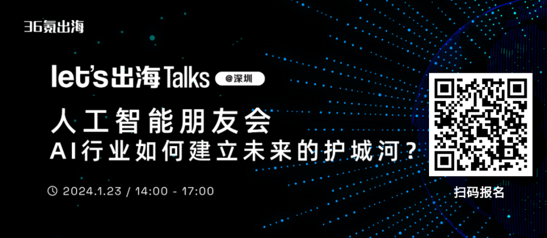 1月23日,36氪出海携手海外制造业巨头旗下投资部门,在深圳举办线下朋友会,以小型、闭门的形式,相互交流,讨论 AIGC、AI Agent、IT 基础设施等领域的行业应用与核心壁垒。欢迎扫码图片中二维码,报名参与。