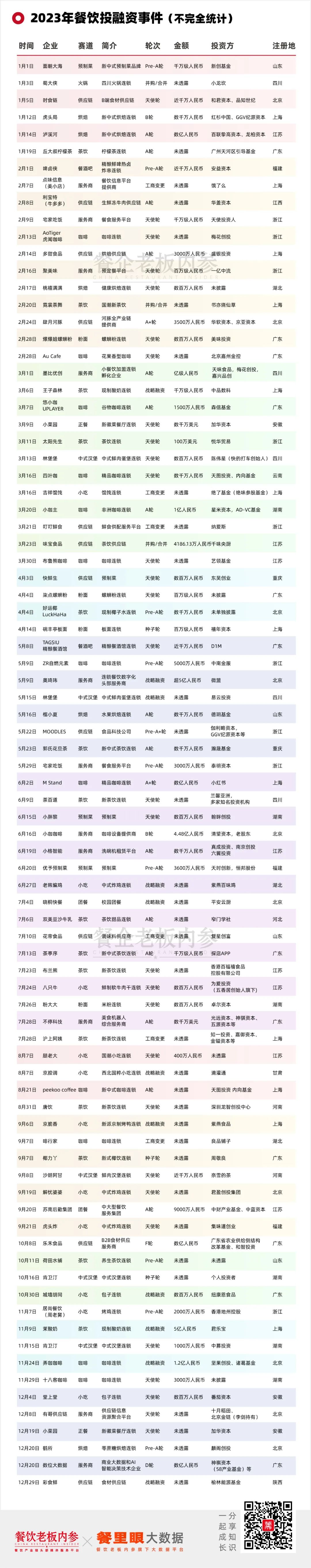 近些年来,餐饮行业一直是消费投资的热门赛道之一。据餐里眼数据研究院多渠道不完全统计,2023年全年餐饮行业融资事件共132起。