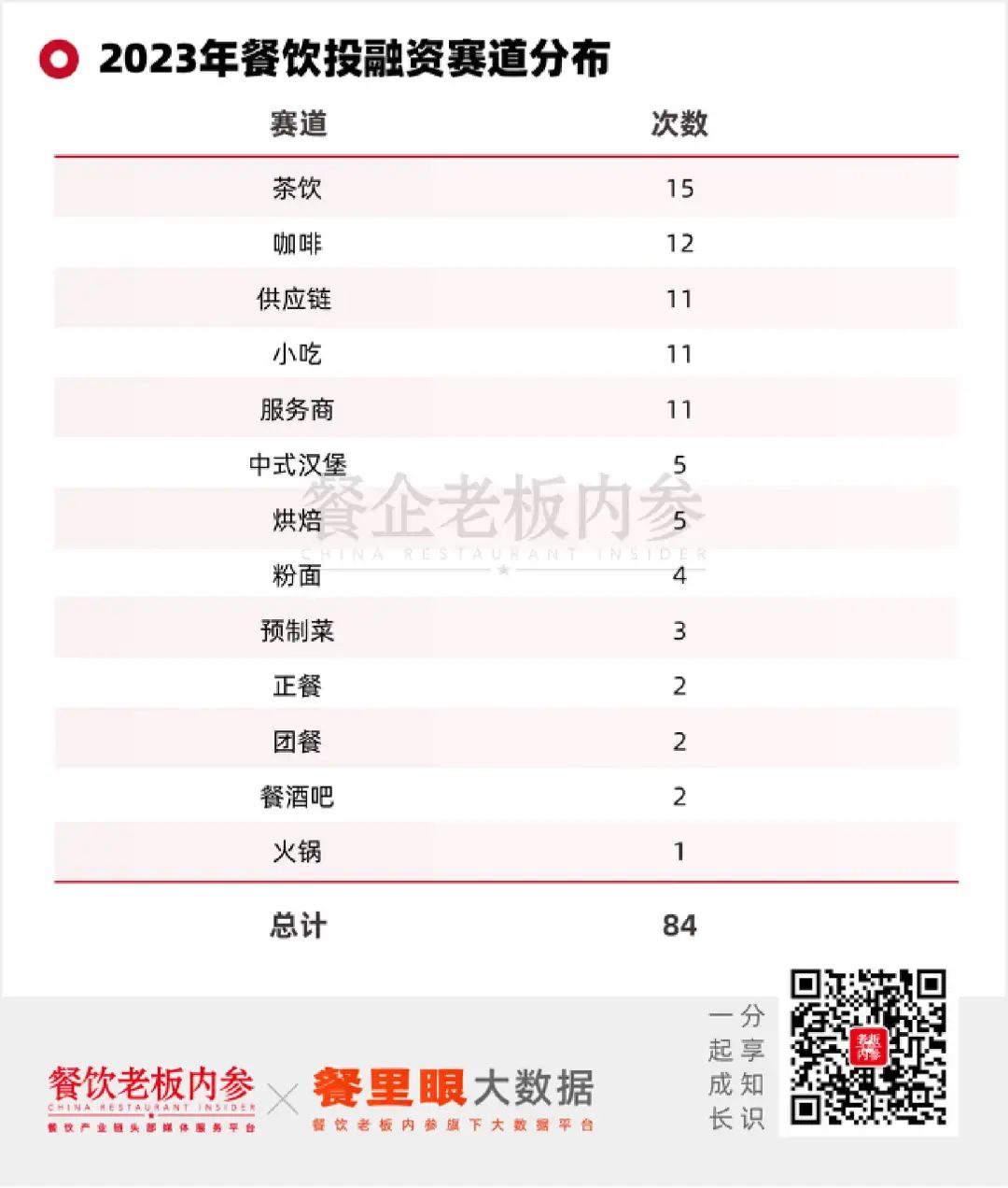 分赛道看,茶饮与咖啡仍占据大头,分别为15起和12起,小吃则有11起。