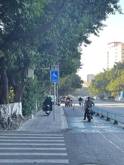 效果显而易见。在机动车道上,出行一客看不到任何电动自行车的身影。视线中偶有几辆,也都是被推着从人行道通行。