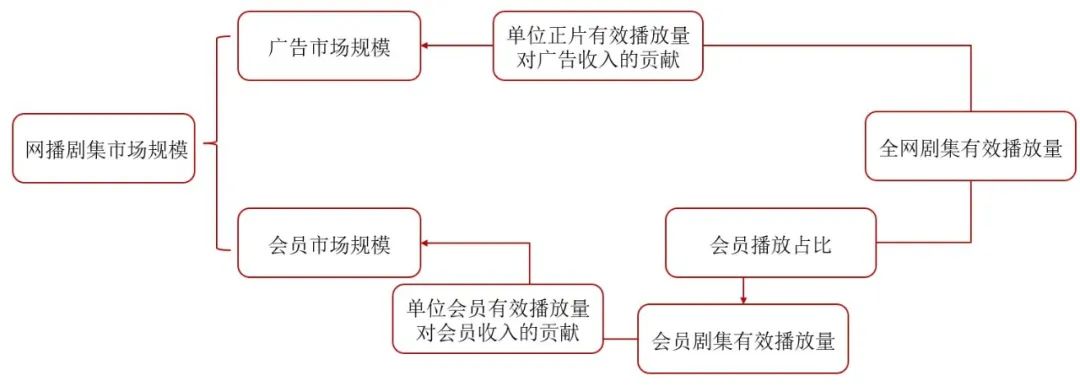 路径一:追本溯源,提升全网剧集有效播放量,广告市场规模和会员市场规模均会扩大。