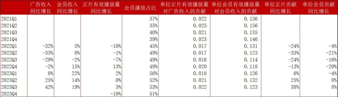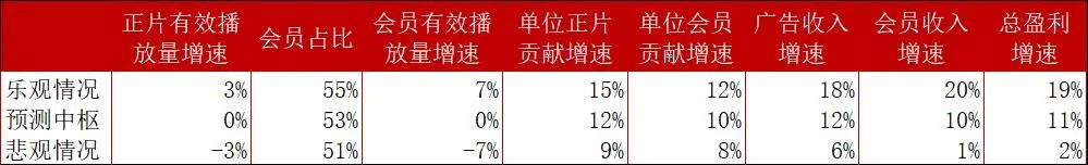 假设2:不考虑《狂飙》这样的特殊情形,会员占比在2023年的基础上缓慢提升;
