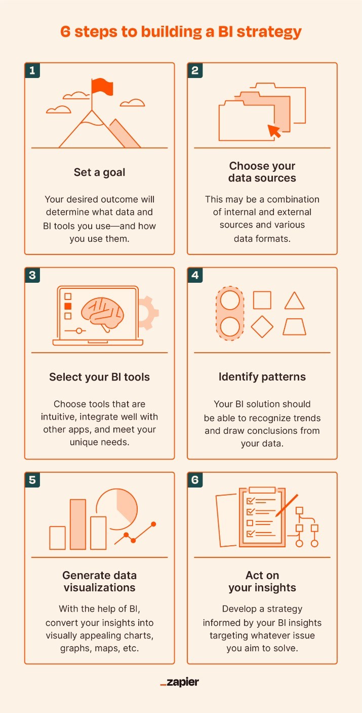 收集到所有数据源后,您就可以选择工具来转换、分析和学习数据了。您使用的平台将取决于您的商业智能目标,这就是为什么在步骤 1 中确定这些目标至关重要的原因。