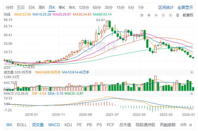 到了2023年,其业绩有所回暖,前三季度营收253.6亿元,归母净利润23.5亿元,不过同期应收账款达到151亿元,有坏账风险。市场对此也不买账,其股价仍然“跌跌不休”。