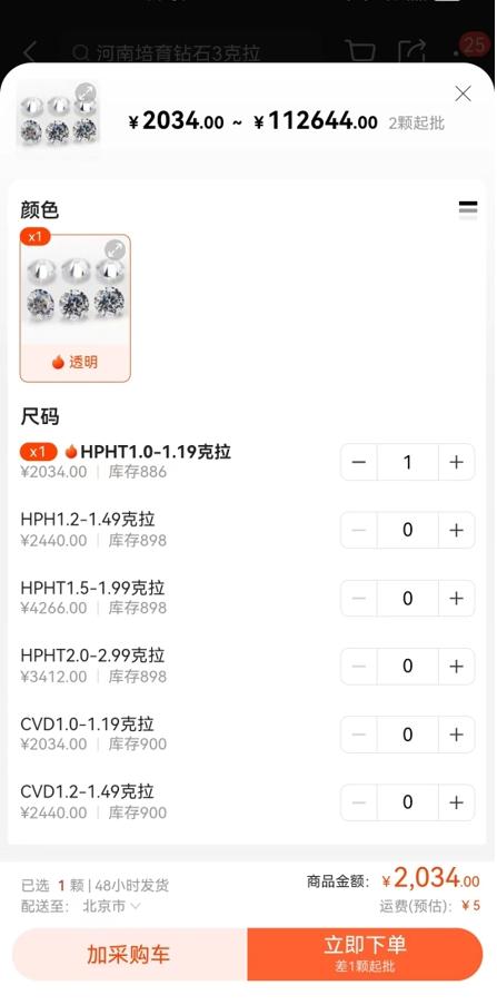 培育钻石价格目前也处于低位。“去年到今年跌了得有一半儿了。” 邹禹铭说。