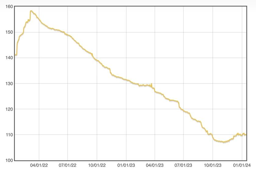 IDEX在线钻石价格指数(2022.1.16-2024.1.16)