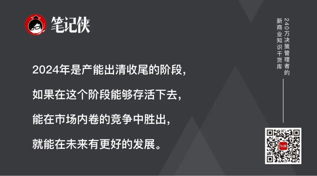 产业的集中、中小企业的出清、产业竞争的复杂化及不可确定化,是这两三年讨论的核心趋势,2024年产业出清步伐将大幅加速,内卷程度将大幅提升,同时产业的变革动荡也将大幅加剧,各个产业都将经历产业的全面结构性重构。