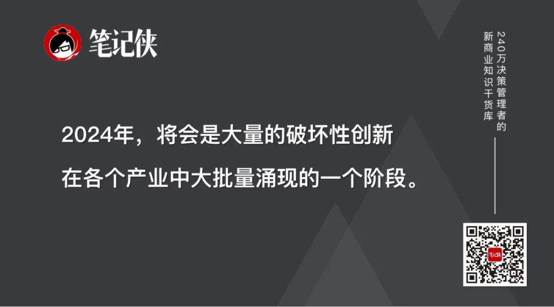 2024年,将会是大量的破坏性创新在各个产业中大批量涌现的一个阶段。