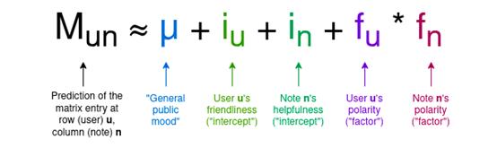Community Note 的算法示意,来源为 BirdWatch 论文|图片来源:Chain Catcher