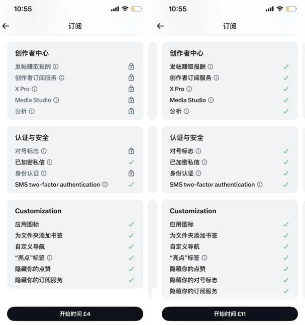 目前 X 的付费订阅名为 X Premium(原称 Twitter Blue),一共分为 3 个等级(基础版、标准版、Plus 版),这三个等级主要的区别是在免广告和推文曝光度方面,订阅等级越高帖文曝光度越高,看到的广告也越少,订阅费用里面含有一定的“推广费”。而基础版比较特殊一些,不能使用创作者中心和认证服务,除此之外其他权益与标准和 Plus 版相同,该订阅主要面对的是普通用户。也就是说,成为创作者的前提是,成为订阅用户。