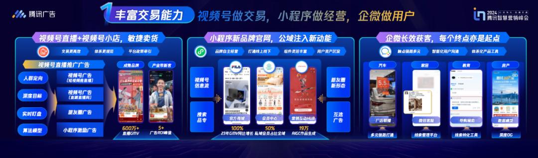 但是从广告到交易实现的重要节点是视频号小店。这项基建让腾讯全域交易链路变短,更快捷更有效率,如何更好地让广告支撑到视频号小店的交易能力,也是2024年腾讯广告努力的方向。