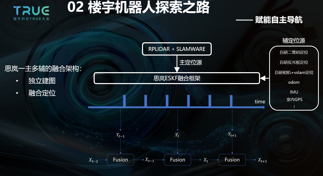 现在行业中一般怎么解决这个问题,也就是我们要讲的第二个挑战点。复杂高变环境下的可靠定位。具体的做法来看,最值得做的事情就是不能只局限某一种传感器,现在机器人已经非常广泛地用到了各种其他类型的传感器,主要包含像视觉或者说是像毫米波或者超声波的方案进行融合,这种融合使机器人在更多的纬度理解环境并且应对环境的挑战。