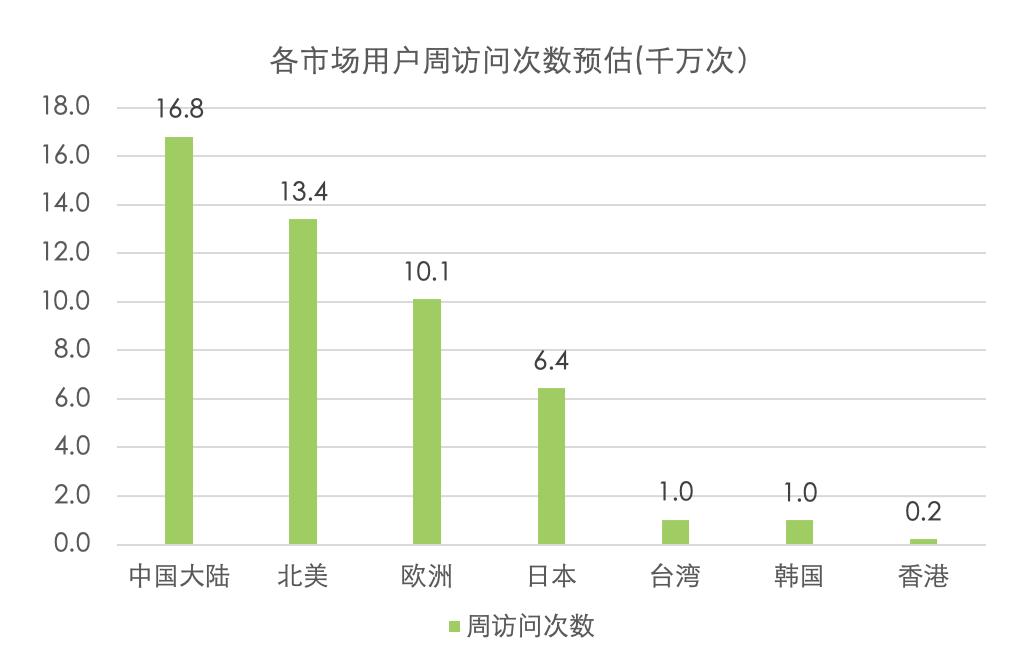 全球App Store每周访问次数超6亿,我们给出的各个市场 App Store 的访问次数如图。访问量依次是中国大陆、北美和欧洲,这三个地区周活均超1亿;接下来则是日韩和港台地区。App Store周活与iPhone持有用户数,人口的基数都有关系。