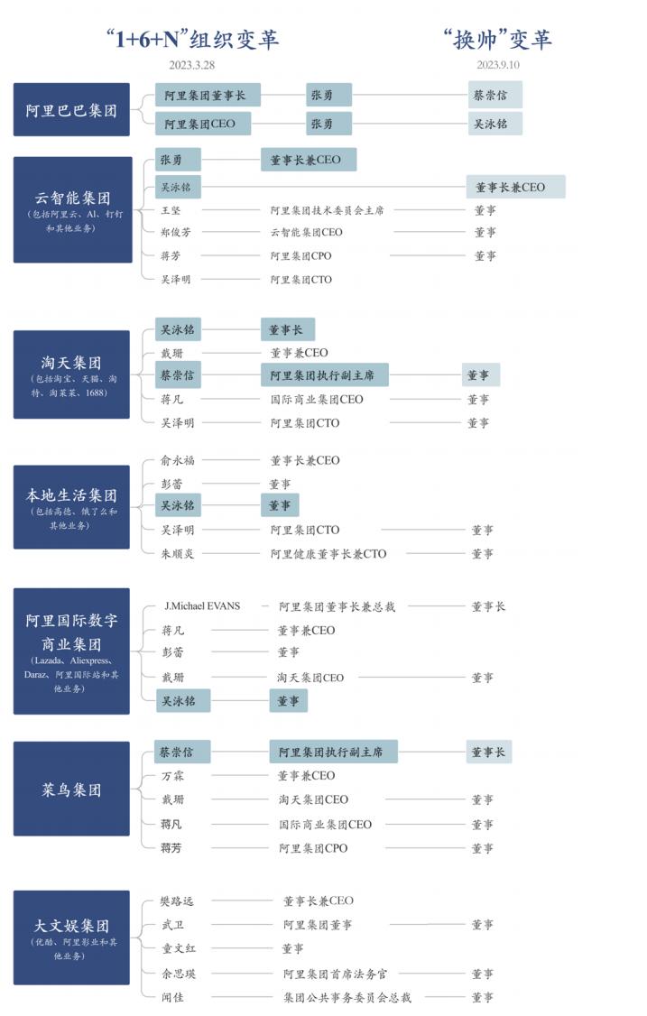 比起张勇,吴泳铭是一个以技术见长的年轻CEO。甫一上任,他就多次强调过去“必须翻篇归零”。其将少壮派扶上舞台,管理层也更加年轻化。