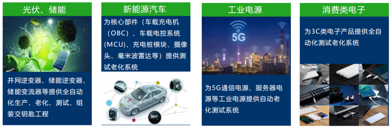 在光储充领域,「鼎泰佳创」的产品已涉足光伏逆变器、储能变流器、储能电池包充放电、液冷超充、充电桩模块,并着手布局集中式光伏逆变器、工商业储能系统、集中式储能系统和储能电池PACK与EOL测试等。在汽车电子核心功率部件上,已涉足动力总成(老化测试)和充电总成(老化测试)。目前已服务的头部客户包括华为、比亚迪、吉利、中兴、阳光电源等。