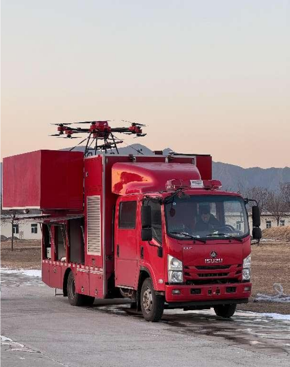 除了在通信、监视和侦察、联合多域作战等军工领域的应用,基于军用技术及成熟的工程化能力,「卓翼智能」的车载无人机,可以带着水管快速升到高空,最高可达到150米。而以高层灭火为例,高喷车灭火往往受到高度的限制,最高可喷射70米。
