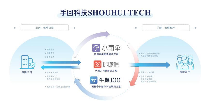 旗下产品包括小雨伞、咔嚓保及牛保100,涉及保险交易、科技、健康服务三大业务,招股书显示,手回科技通过小雨伞平台赋能在线直接销售解决方案;通过咔嚓保平台赋能的代理人营销科技解决方案;通过牛保100平台赋能的业务合作伙伴营销科技解决方案。