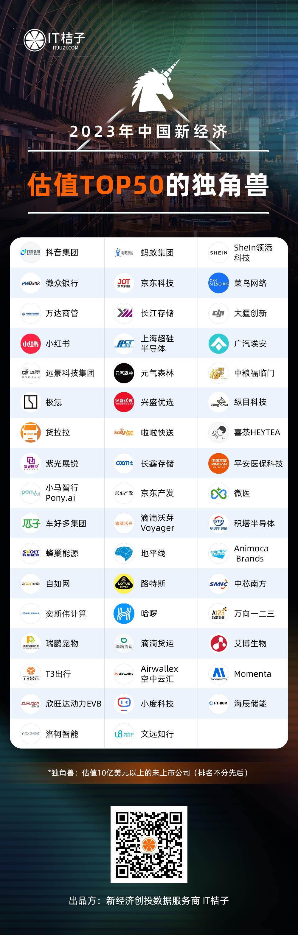 - 2023 中国新经济估值 TOP 50 独角兽(50 家)