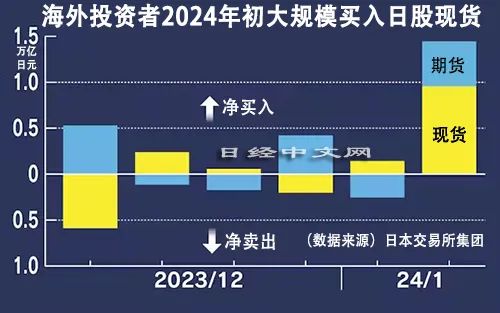 海外投资者1月第2周的净买入额达到1.4万亿日元,创出2023年4月以来的最大规模。股票现货的净买入额达到媲美2013年安倍经济学行情初期的水平,反映出海外投资者“从心底里看好”日本股票和企业变革。