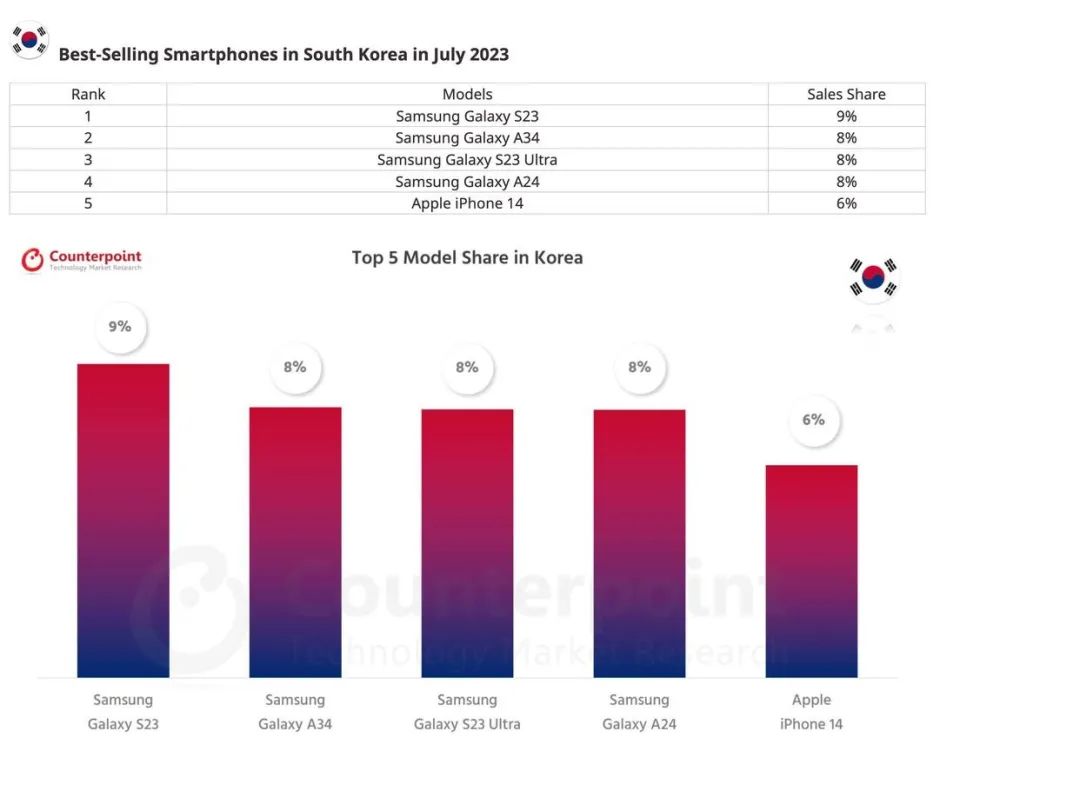 至于三星常年占比达到80%的韩国大本营,也逐渐被苹果的降价吸引到。