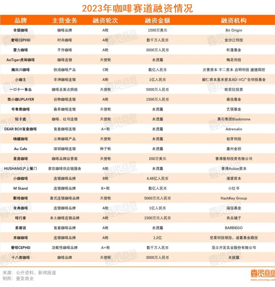 作为国内最火热的消费赛道,在2023年,咖啡赛道共发生24起融资,累计金额17.31亿元。