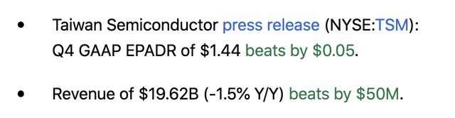 台积电(NYSE:TSM)于1月18日发布了强劲的第四季度业绩,有迹象表明芯片业务即将再次复苏。台积电一直在全速推进人工智能(“AI”)芯片的制造,但由于去年半导体库存调整期间智能手机和其他行业的疲软,整体销售滞后,随着人工智能芯片需求的飙升,该股将回归增长模式。