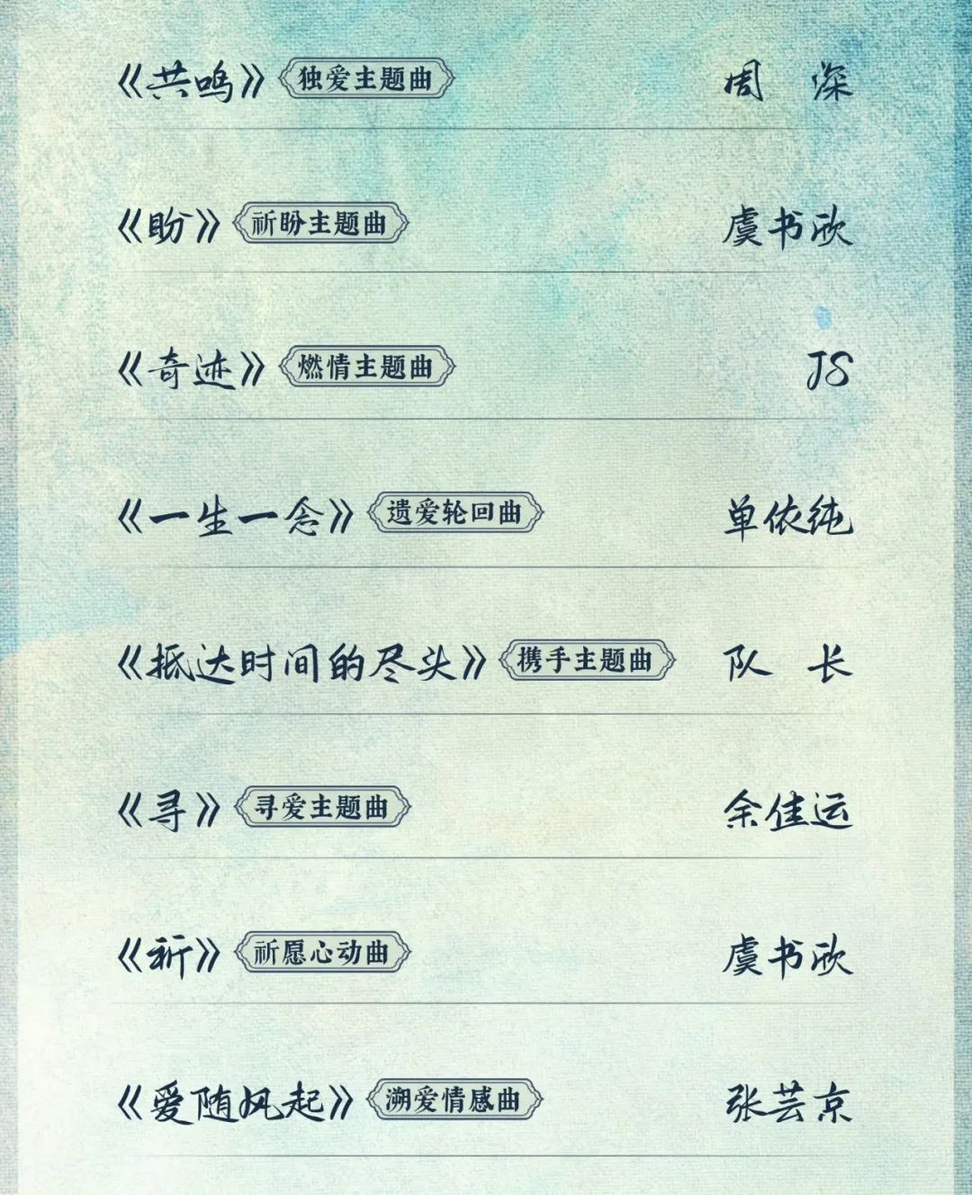 而同期开播的《祈今朝》,为了蹭上此前两部《仙剑》的高分之作,邀请了众多《仙剑》系列的OST歌手再度唱作,不仅有曾为《仙剑一》演唱《杀破狼》的JS组合演唱主题曲《奇迹》,还有曾为《仙剑三》演唱《偏爱》的张芸京演绎《爱随风起》等。
