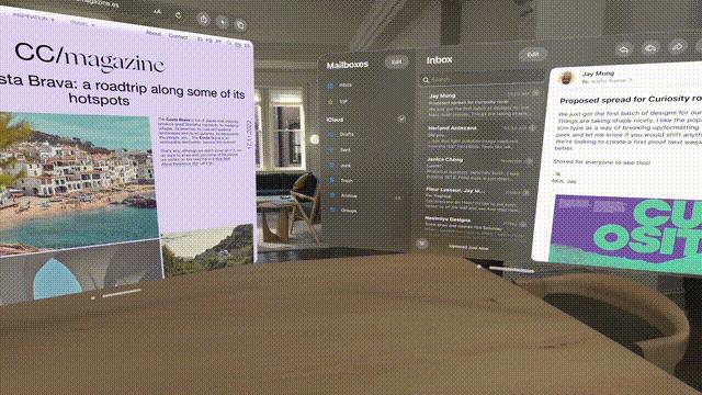 生产力方面,你不仅可以直接在Vision Pro上体验超大的工作空间。